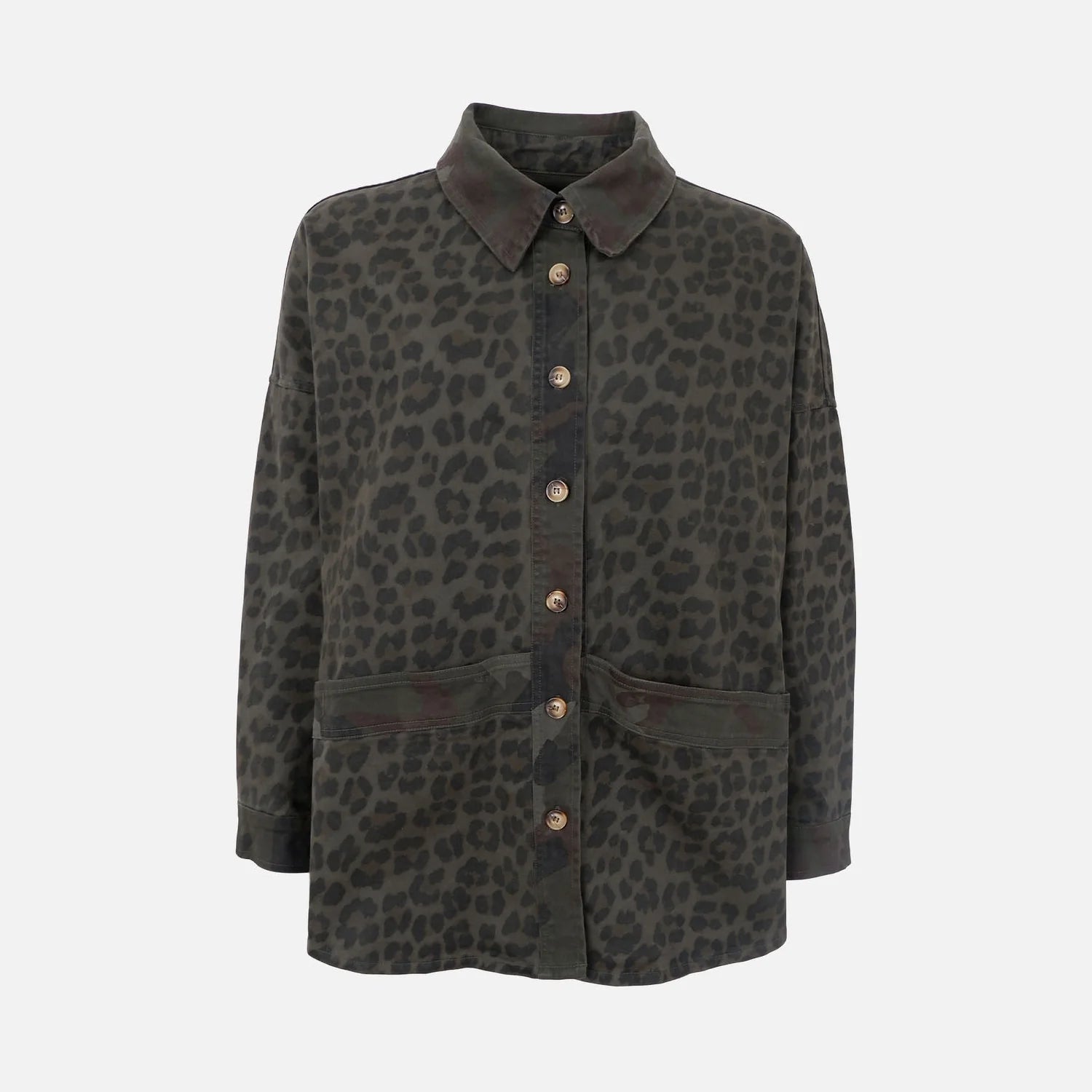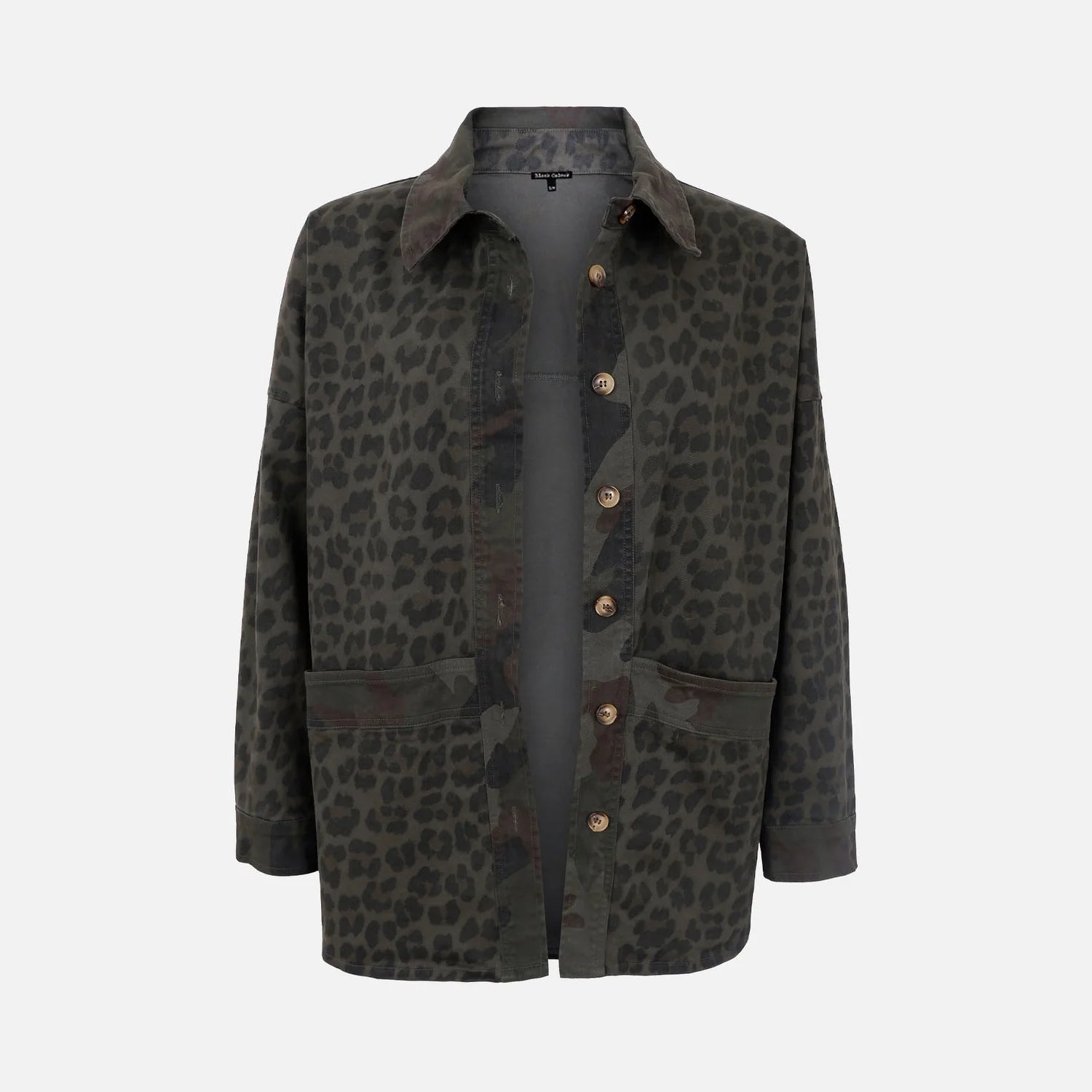 Effortlessly cool and easy to wear, the Morgan Jacket in Khaki Camouflage by Black Colour is a versatile shirt-style jacket crafted in soft, denim-quality cotton. Featuring a classic collar, full button-through front, and oversized patch pockets, its relaxed, oversized fit makes it the perfect layering piece. Ideal for transitional weather or thrown over your favourite knits and tees.
