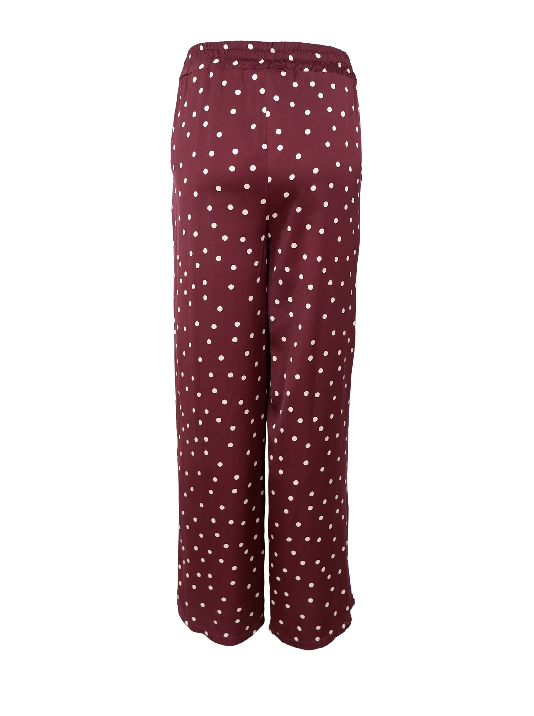 These comfortable and airy trousers are made from a lightweight, woven viscose fabric with an elasticated waist and a wide fit. The model has a beautiful dotted pattern, a relaxed silhouette and is easy to style for both everyday and party wear. Wear them alone or with the matching blouse.