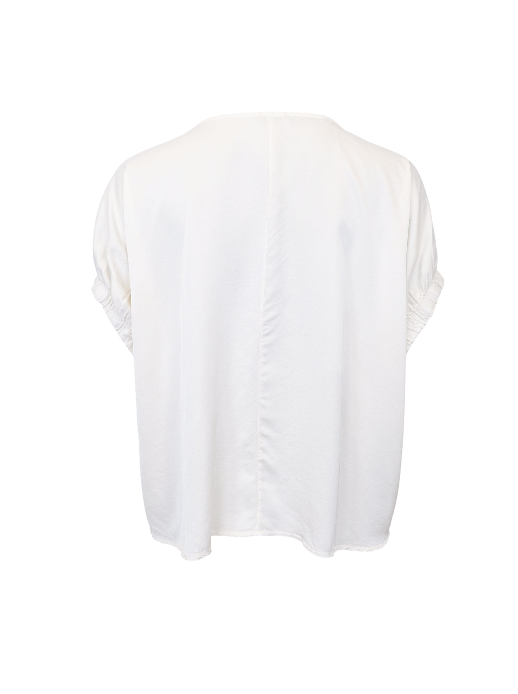 Simple and stylish blouse with a round neck and a loose fit that falls nicely around the body. The short sleeves have a light ruching detail, which adds a feminine touch to the otherwise minimalist look. Made in a soft and light viscose quality, making it ideal for both everyday wear and more formal occasions.