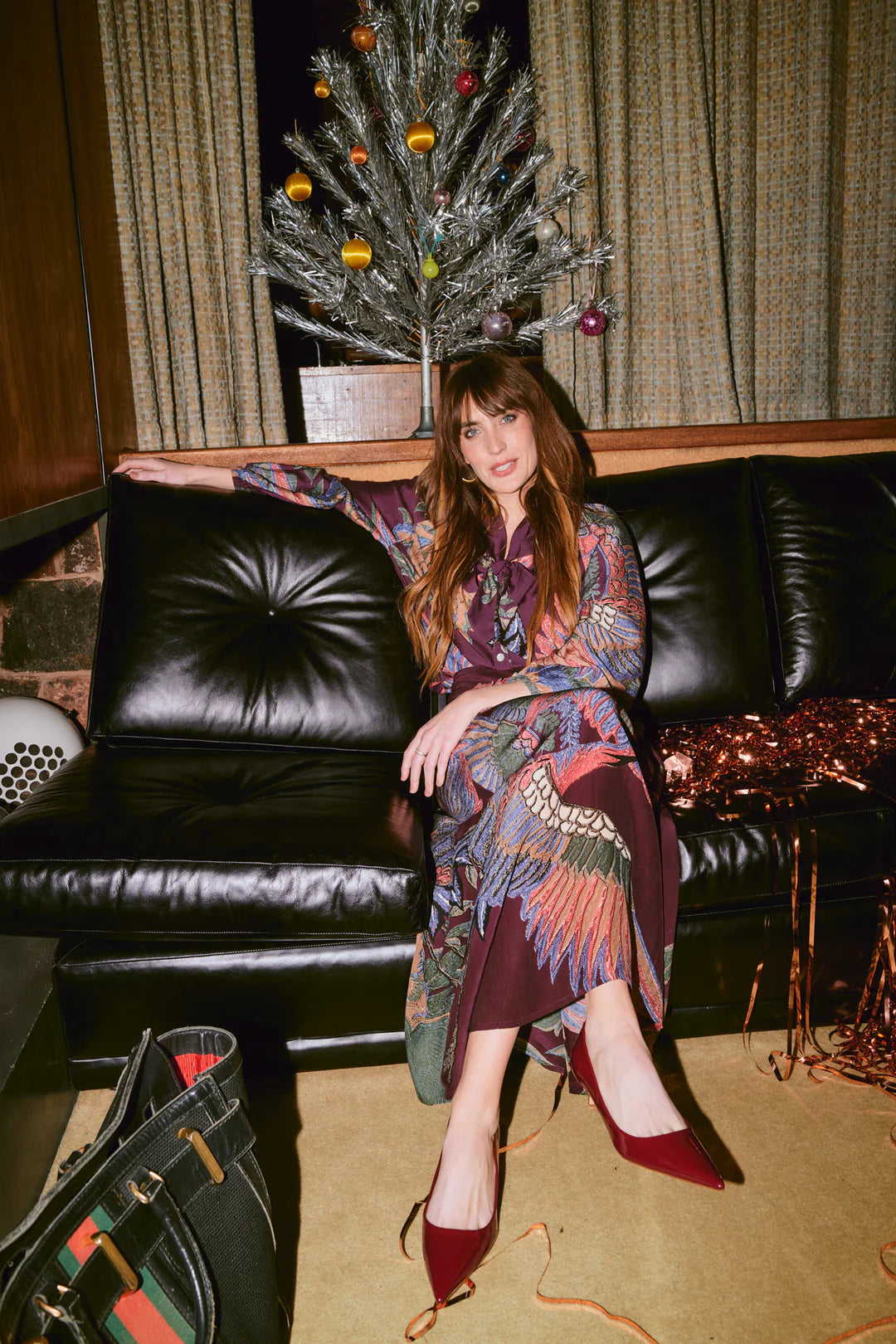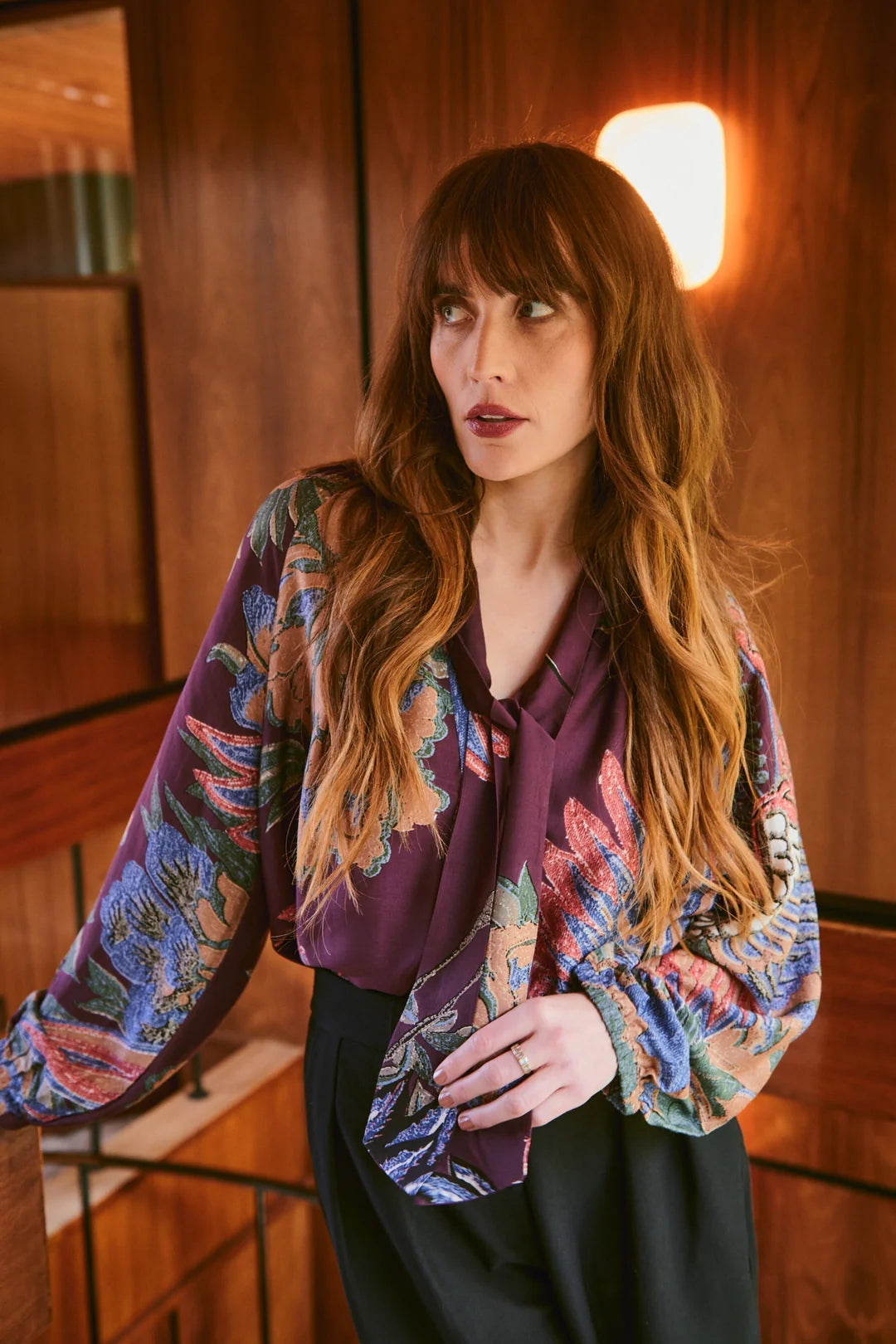 One Hundred Stars Crane Plum Pussy Bow Blouse