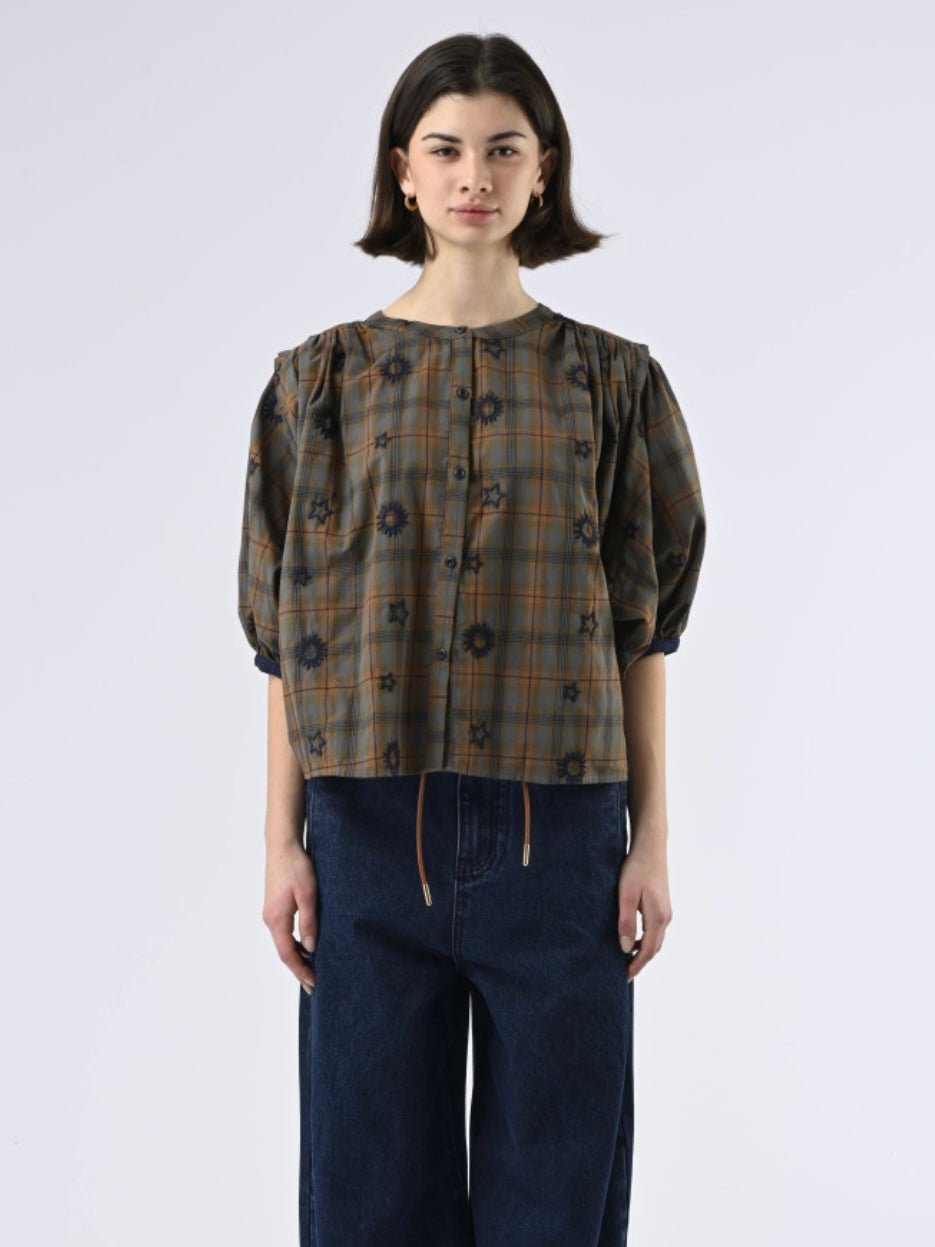 The balloon sleeves create a pretty volume, bringing a touch of romanticism and modernity to the silhouette. It is the ideal blouse for a casual and feminine look. What makes this piece all the originality are its contrasting embroidery.
