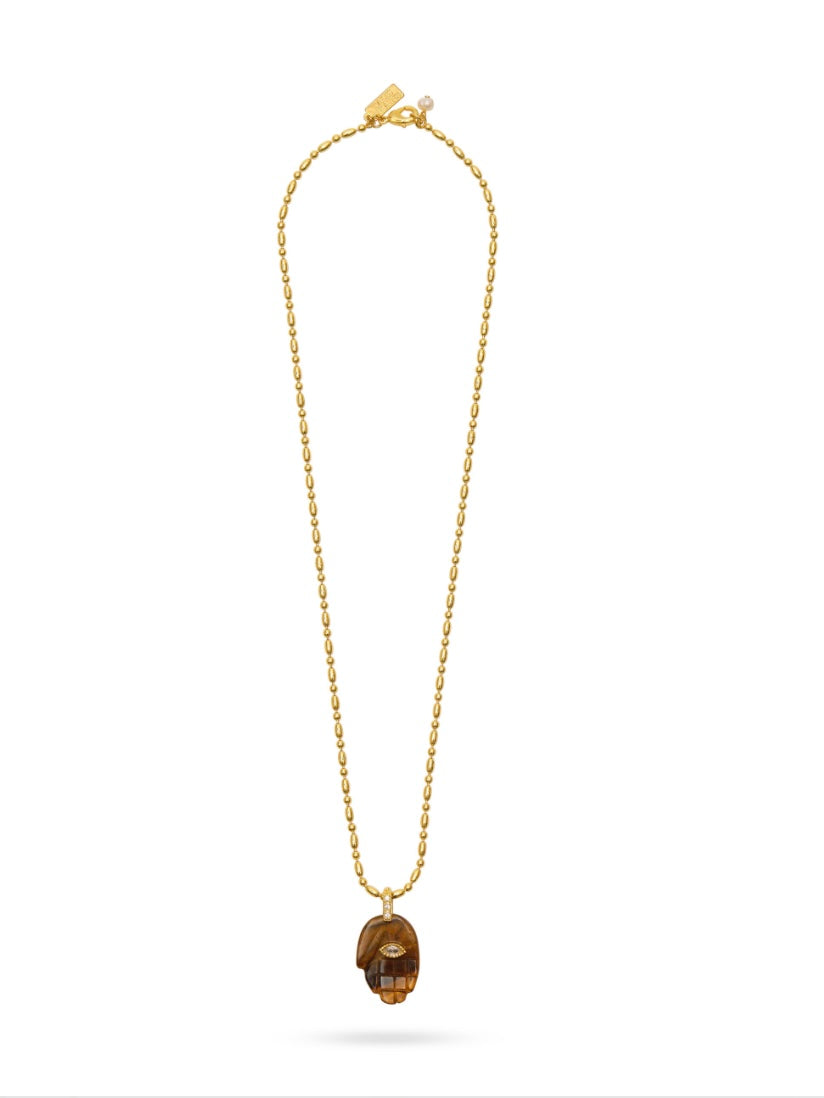 Talis Chains Hamsa Pendant Necklace-Tigers Eye