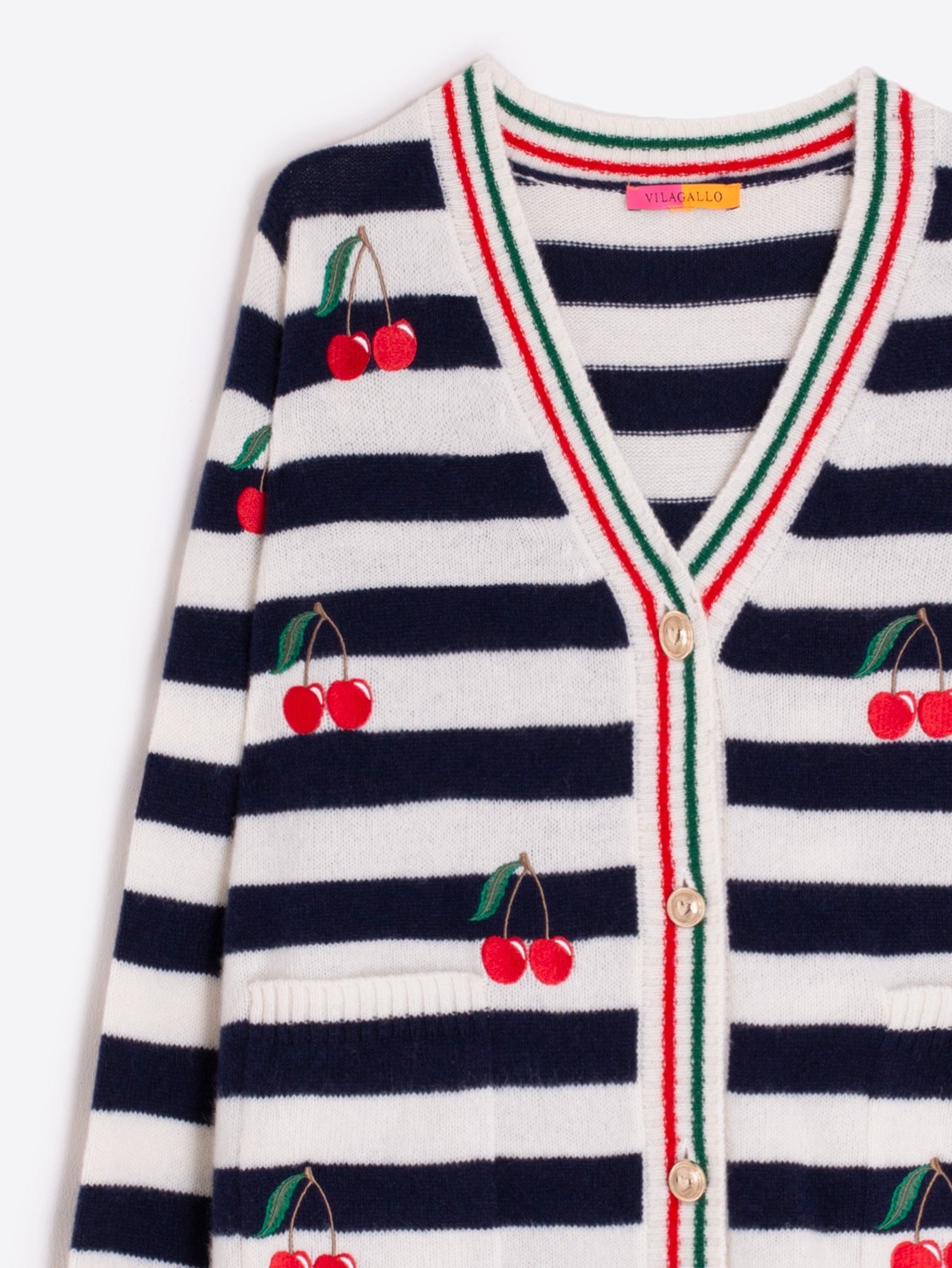 Vilagallo wool Alina Cardigan with Cherry embroidery